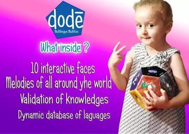 Dodé之前,似乎没有哪个教具能涵盖50多种语言。在学前阶段,孩子可以学习多种语言,包括自己国家的母语。研究也证明,当孩子说的不仅仅是一种语言时,他读得更好,写得更好。 Dodé不仅仅是一种玩具,还可以增强学习一种或多种语言的能力。 Dodé是一个小技术宝石,共有10个切面,每张面上有6个图像类别,数字、颜色、形状、动物、水果、家中常见的工具等。它独特的形状使它无论在何种方向上都具有超级互动性。
