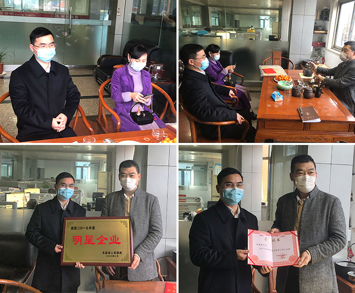 永嘉县政府领导除了现场指导防疫工作外,还充分肯定了银河游乐在2019年的成就与贡献,并授予“明星企业”称号。