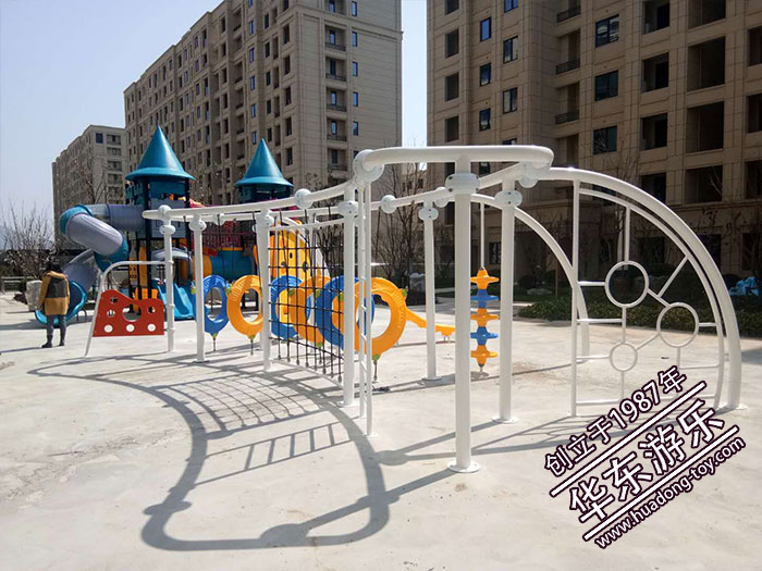 银河游乐舟山市房地产案例采用的是银河游乐提供的欧韩城堡系列大型户外滑梯,并以非标定制的爬网作为辅助游乐设备,场地的合理化理由,游乐设备样式的选择都充分肯定了银河游乐的专业与产品质量的美观。
