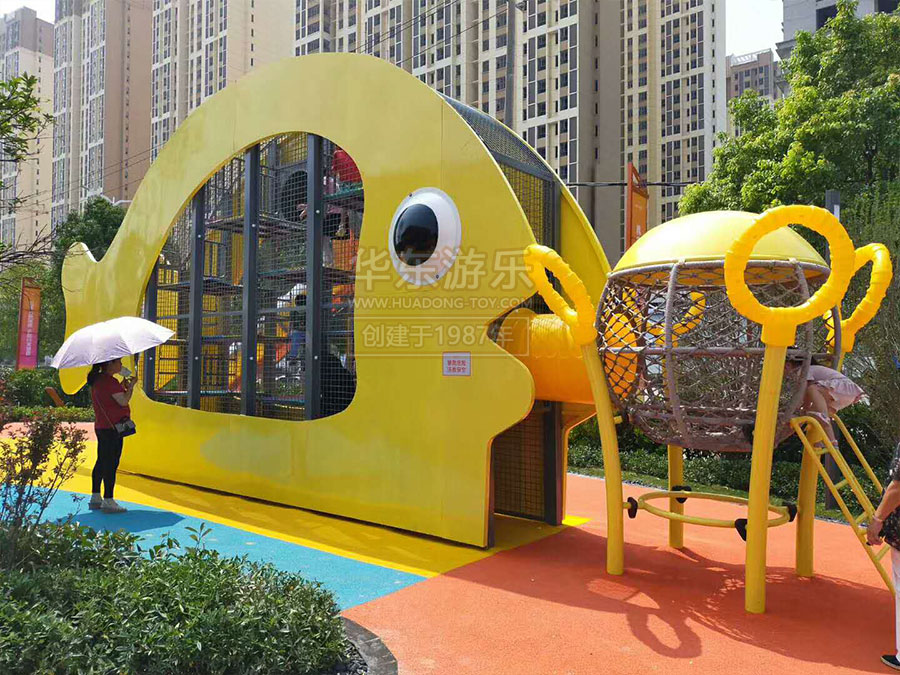 碧桂园城市之光案例是由银河游乐自助设计的研发的以水中的鱼儿为主题而设计的游乐设备,该游乐设备具有爬网、不锈钢滑梯、攀岩设备等,设计新颖,主题明确,深受小朋友的喜爱。