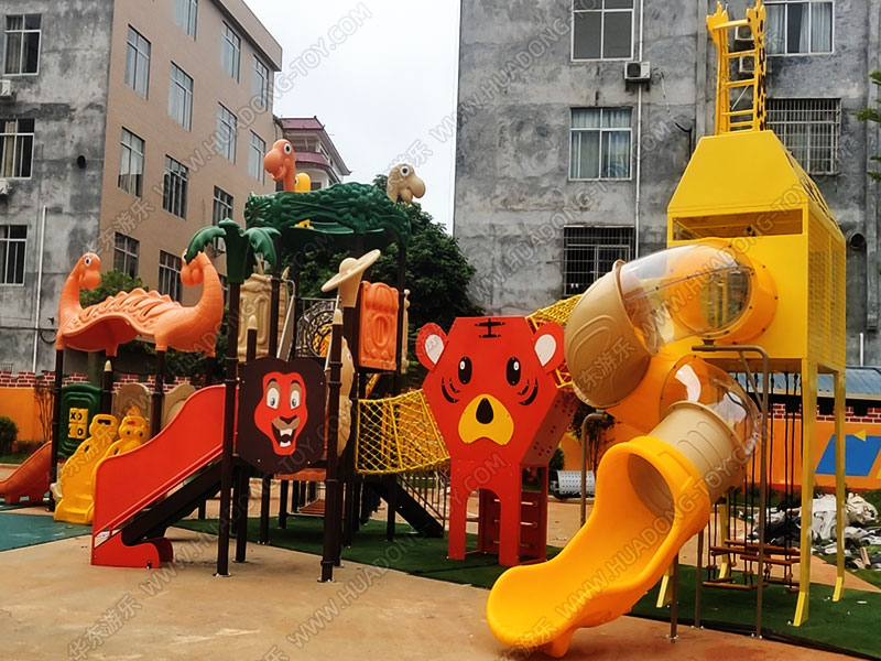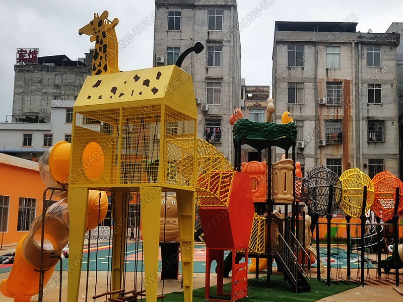 该幼儿园项目采用的是银河游乐自主研发的动物世界系列大型滑梯组合,该滑梯以可爱的小动物为设计模型,让小朋友可以和谐的与小动物相处,教育他们能够保护小动物,爱护小动物。