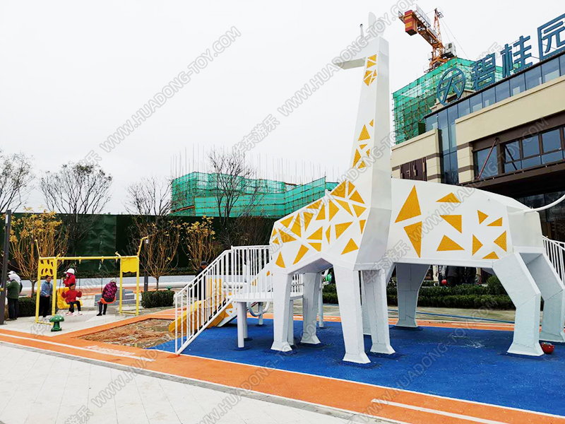 碧桂园天宸房地产项目是一个生活小区的休闲娱乐项目,该项目具有很好的主题性,采用以长颈鹿为主题,生动形象,具有很高的趣味性,观赏性,深受小朋友们的喜爱,项目中增加了银河游乐生产设计的秋千组合,为生活区的人们提供了很好的休闲场地和设施。