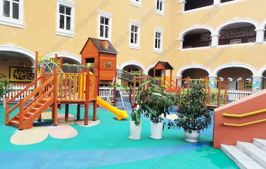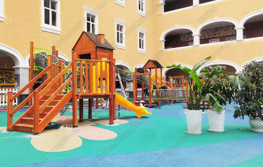 • 成都乐盟国际学校是一个综合性的学校,这次的项目主要锻炼小朋友们爱攀、爱爬、爱钻等特点,采用木制定制,结合爬网等设备给小朋友提供了很好的娱乐场所。