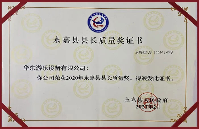 县长质量奖是永嘉县人民政府设立的最高质量荣誉,从企业的质量管理体系、客户服务、竞争力、产品研发创新能力以及可持续的业务增长能力等全方位进行综合评审,最终银河游乐从上千家企业中脱颖而出,被评为“永嘉县县长质量奖”。