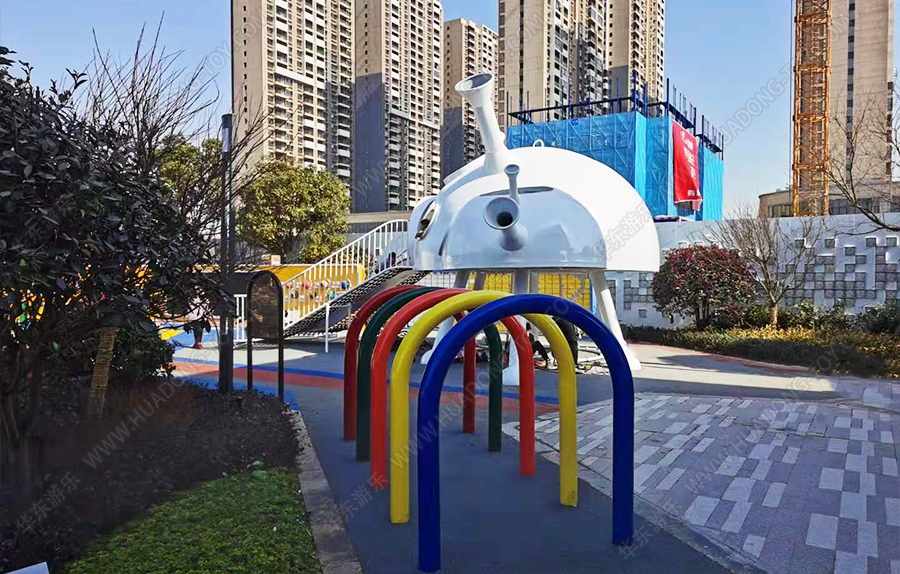 湖北武穴碧桂园选用的是银河游乐定制的甲壳虫主题的项目,该项目从研发,设计、生产、到最终的安装都是由银河游乐自主完成的,整个场地设置了爬网、钻洞、攀爬、不锈钢滑梯、健身器、跷跷板、翻翻乐等游乐设备,为生活在该小区的居民提供了一个休闲、娱乐、健身的场所。