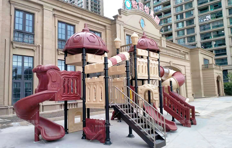 哈贝幼儿园选用的是银河游乐设备生产的别墅屋系列滑梯,该滑梯具有选择滑梯、滑桶等功能,具有颜色艳丽、使用时间长等特点,深受广大顾客的喜爱。