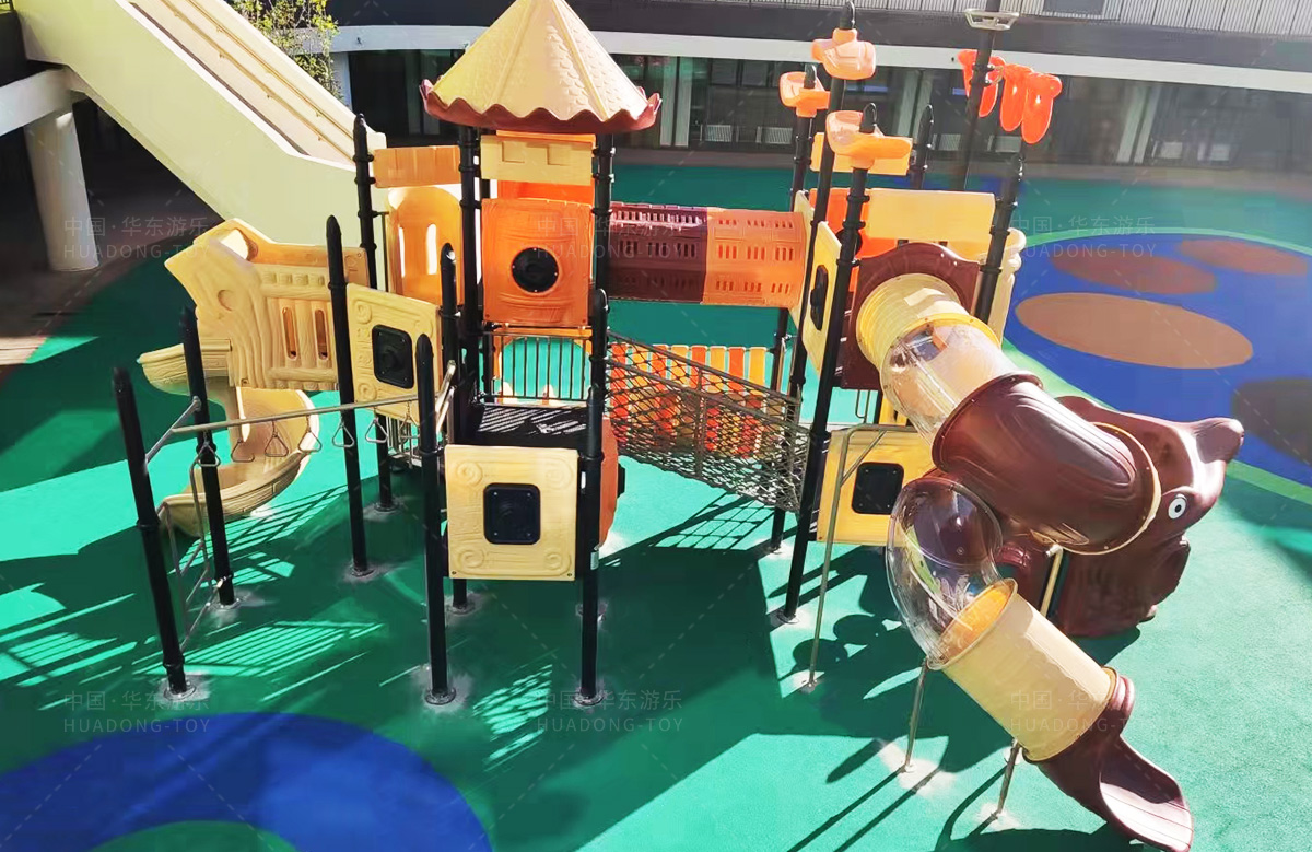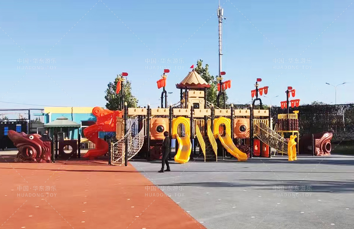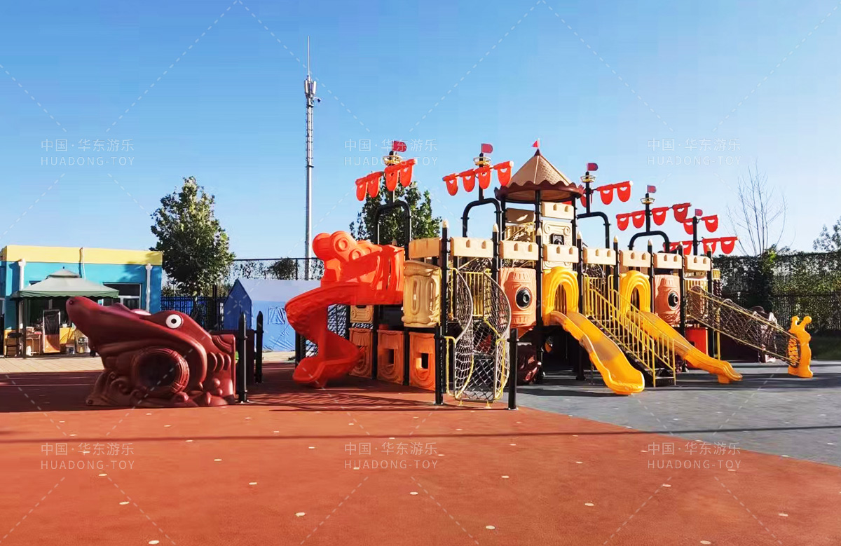 北京市朝阳区朝花幼儿园选用的是银河游乐自主研发的海盗船系列组合滑梯,该套设备设置了大型S型滑梯、攀爬网、钻洞、网桥、攀岩等功能,为老师的教学提供了方便,同时也为校园提供了生机与活力。