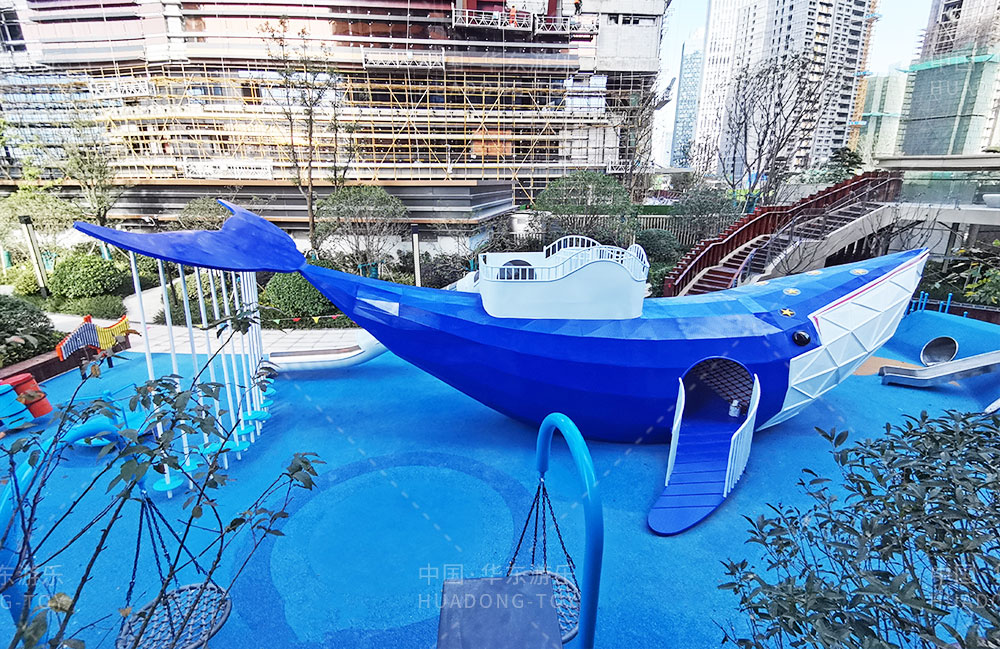 杭州萧山区奥景名邸项目是一个又银河游乐自主研发和生产的非标定制系列游乐设备,整个项目采用蓝色的海洋为背景,大型的鲸鱼为主要娱乐设备,整个游乐场结合小区实际情况而设计,为生活在该小区的人们提供了 一个生活、休闲、娱乐的场所。