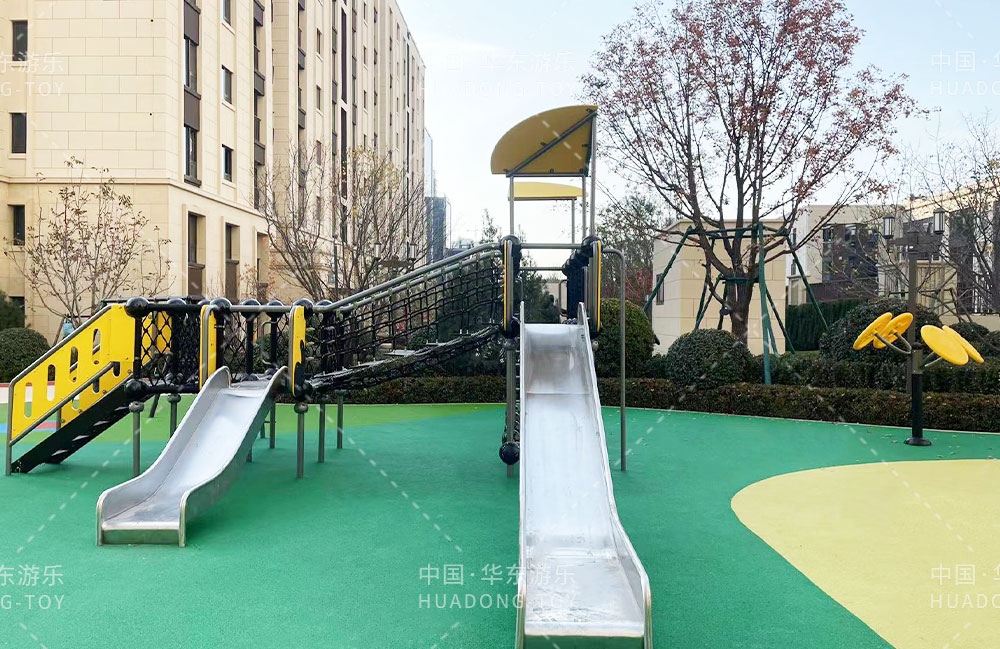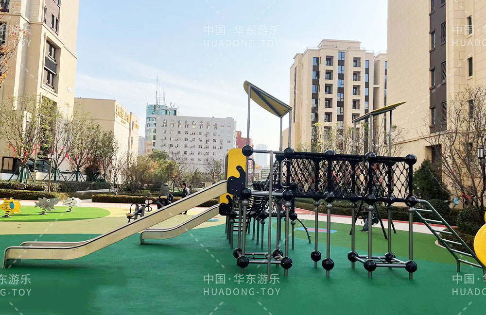 太原华润昆仑域地产项目选用的是银河游乐自主研发的游乐设备,娱乐场里选用了健身器材、具备攀爬网、不锈钢滑梯为一体的综合性游乐设备,为生活在该小区的人们提供了一个生活、休闲、娱乐的场所。