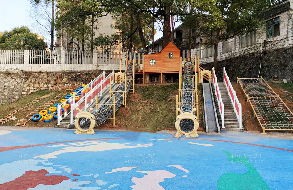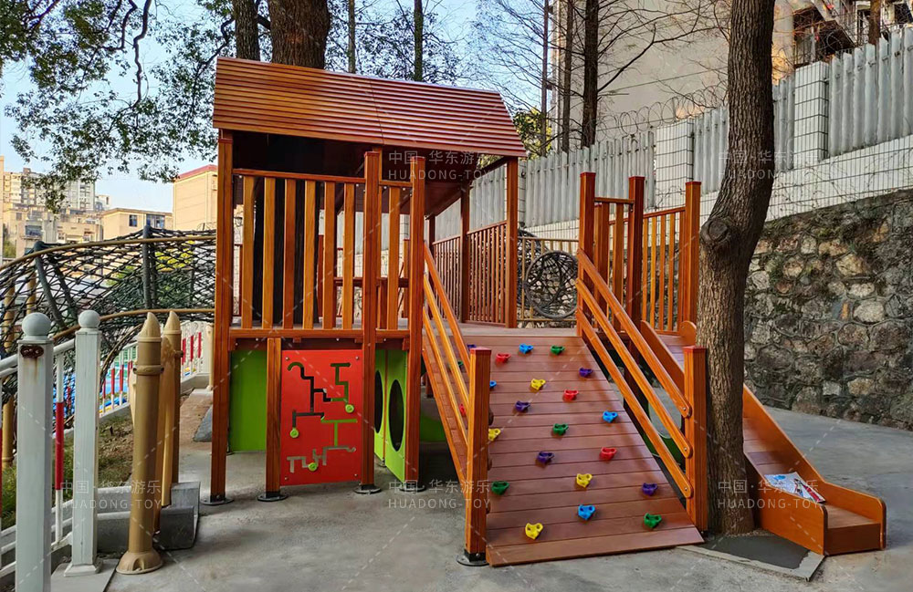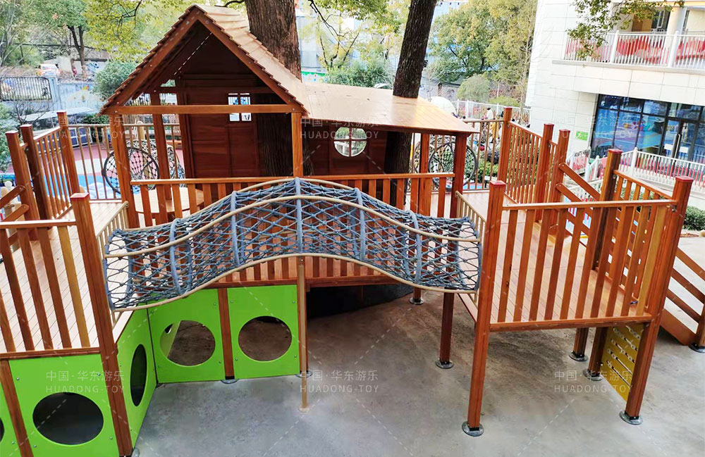 湖南省株洲市株机幼儿园是一家专业的学前教育培训机构,此次项目采用的是银河游乐自主研发的木制非标游乐项目,整个项目设置的有木制游戏小屋,攀爬墙、攀网钻洞、轮胎攀爬等游乐设备。