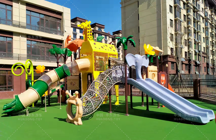 河北省唐山市京唐港开发区滨海华府幼儿园选用的是银河游乐自主研发的动物系列滑梯、该滑梯具有攀爬、滑梯、钻洞、爬网、等功能,能够锻炼小朋友的四肢臂力,很好的让小朋友在玩耍中健康快乐的成长。