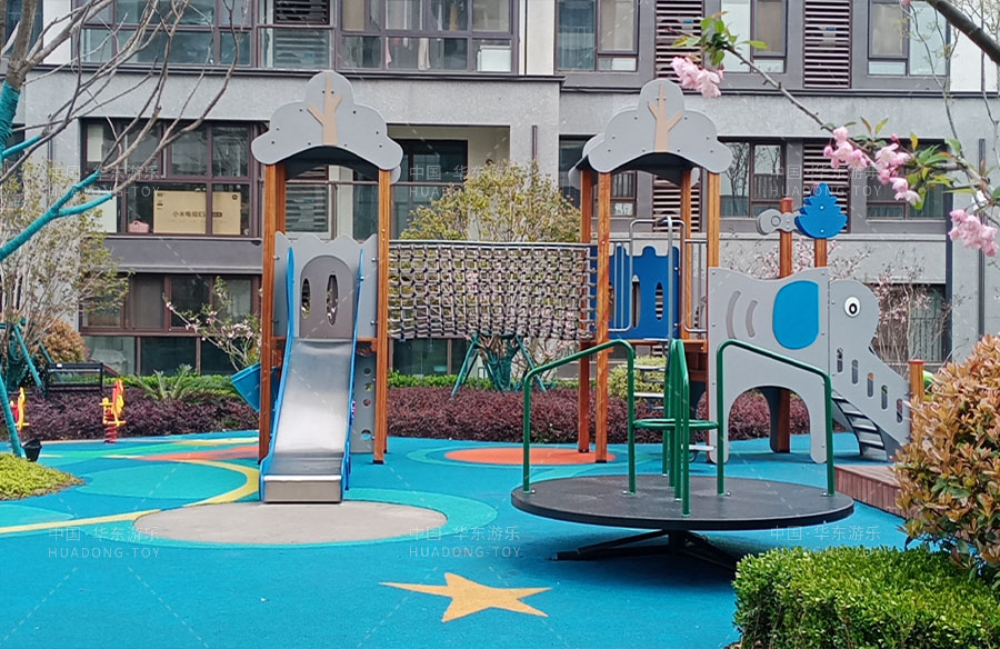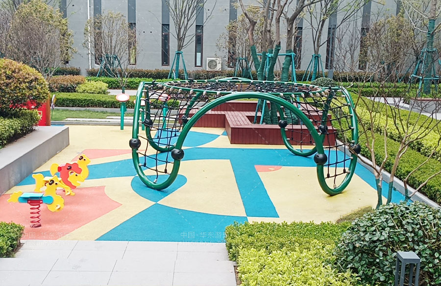 该项目选用的是银河游乐自主研发和生产的网绳攀爬、万能健身器、小型滑梯为一体的综合性游乐园、该游乐园设计了攀爬网、摇摇乐、健身器、手推旋转椅等游乐器械,为生活在该小区的人民提供了一个休闲、娱乐的场所。