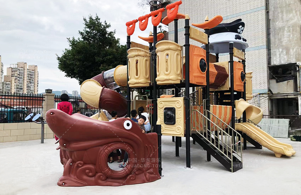 • 该海盗船是一个具备攀爬、滑梯、滑桶、攀爬网为一体的综合性组合滑梯,经过科学的设计、完善的工艺制作而成,具有颜色艳丽、主题性强、经久耐用、使用寿命长等特点。