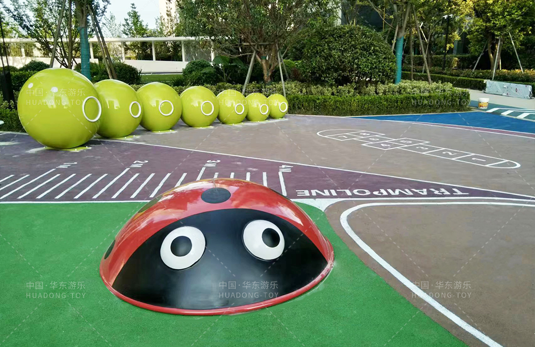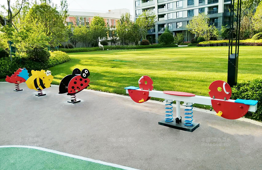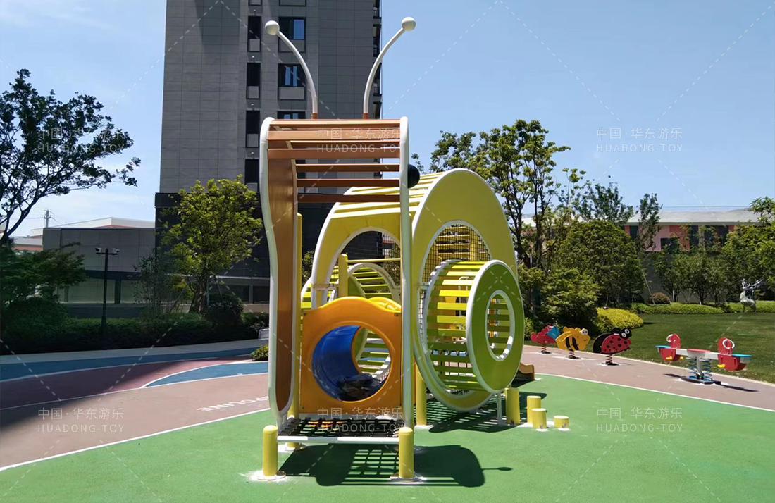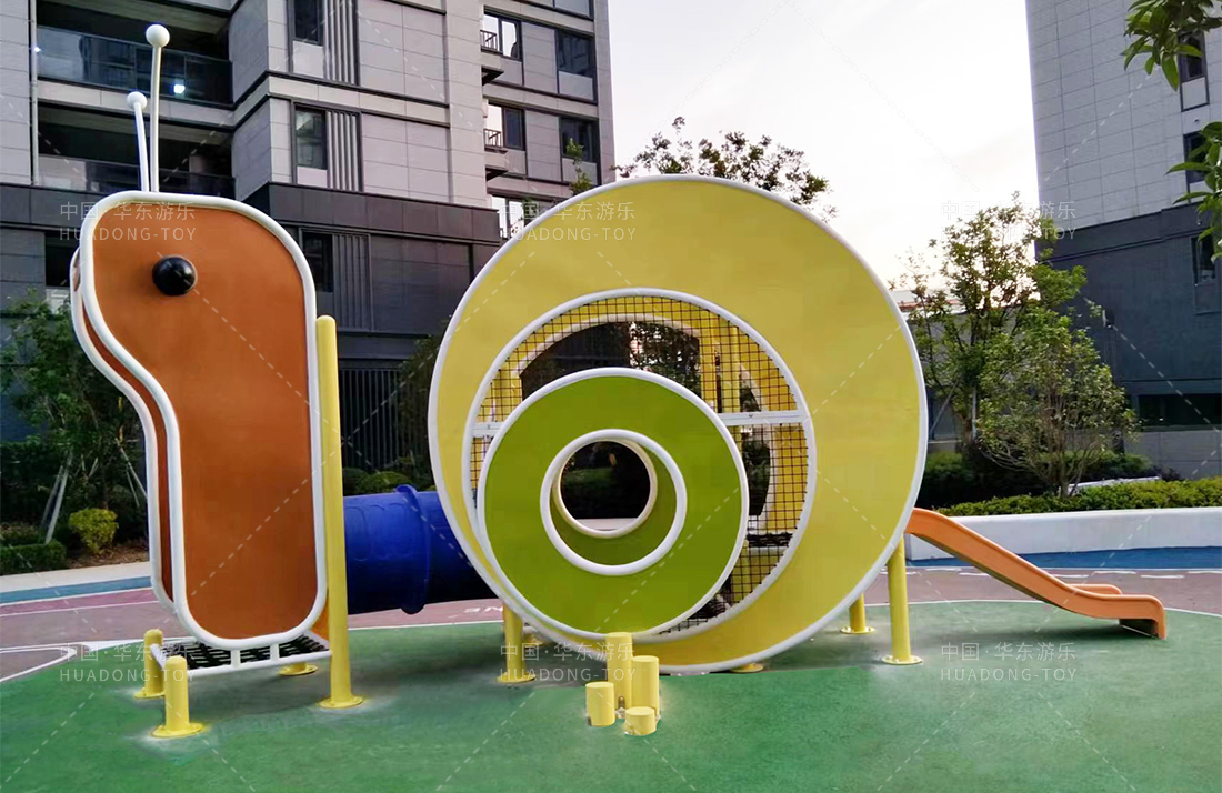 温州德信博悦湾选用的是银河游乐设计和生产的以动物世界的蜗牛为外形而设计的游乐设备,整个游乐场添置了小朋友喜欢的摇摇乐、传声筒、跷跷板、攀爬杆等游乐设备,为生活在该小区的小朋友提供了一个娱乐、休闲、玩耍的场所。