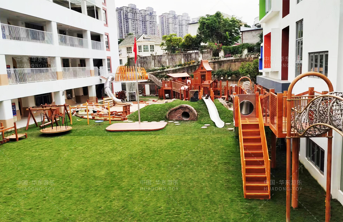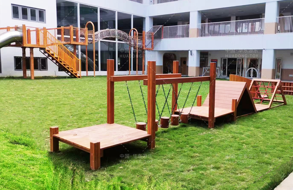 高峰幼儿园是一个专业的学前教育培训机构,此次选用的是银河游乐设计和生产的木制非标定制的游乐设备,设计了具有攀爬网、钻洞、秋千、木制拓展、木制小屋、不锈钢滑梯等功能的游乐设备,丰富的功能、优质的设备、让整个校园充满了生机与活力。