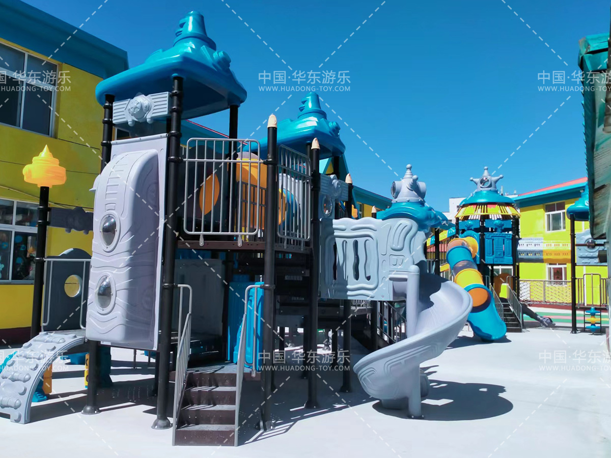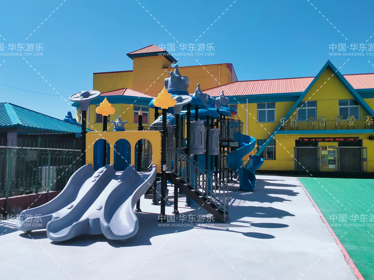 该幼儿园选用的是银河游乐自主研发和生产的赛亚号系列组合滑梯,该滑梯具有功能齐全、玩法多样、使用寿命长等特点,是小朋友健康成长过程中必不可少的游乐设备。