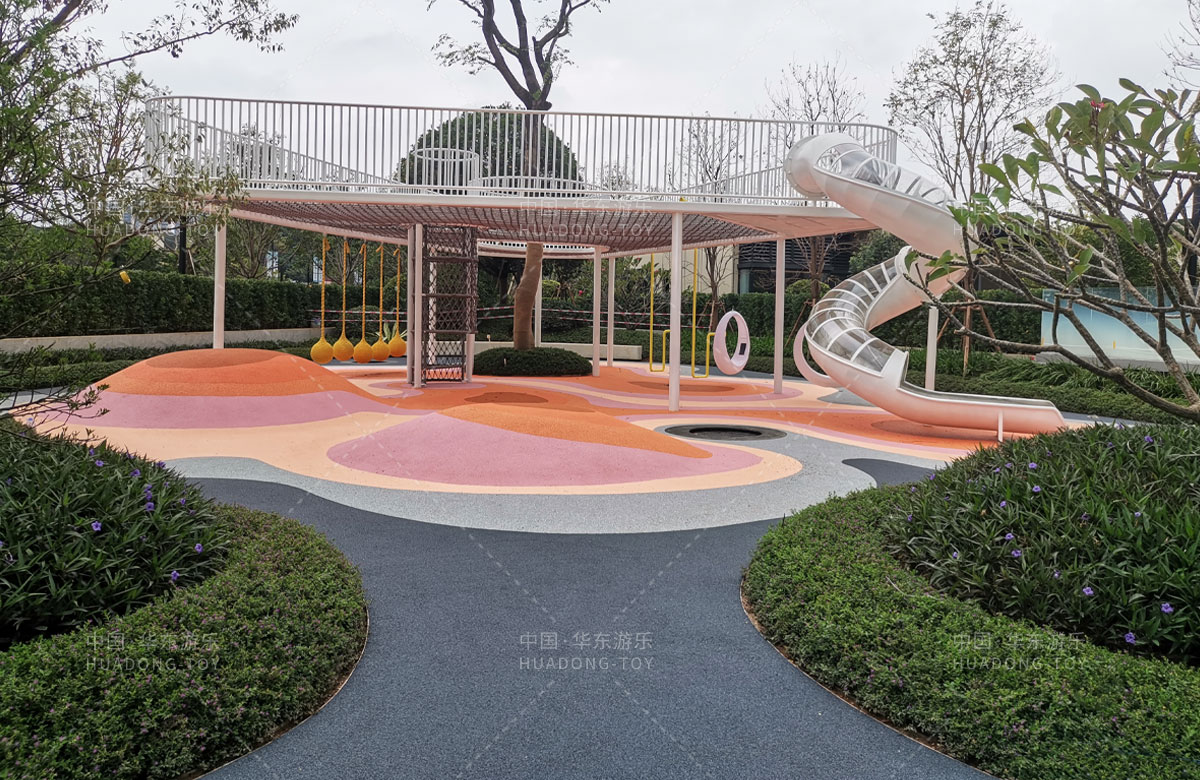 南宁市华润地产未来城市是一个高端的生活小区,该项目选用的是银河游乐自主研发和设计的非标定制游乐设备,整个项目分别设计了小朋友喜欢的大型滑梯、月亮秋千、传声筒、钻洞、爬网、荡球等功能,为生活在该小区的人民提供了一个很好的休闲娱乐的场所。