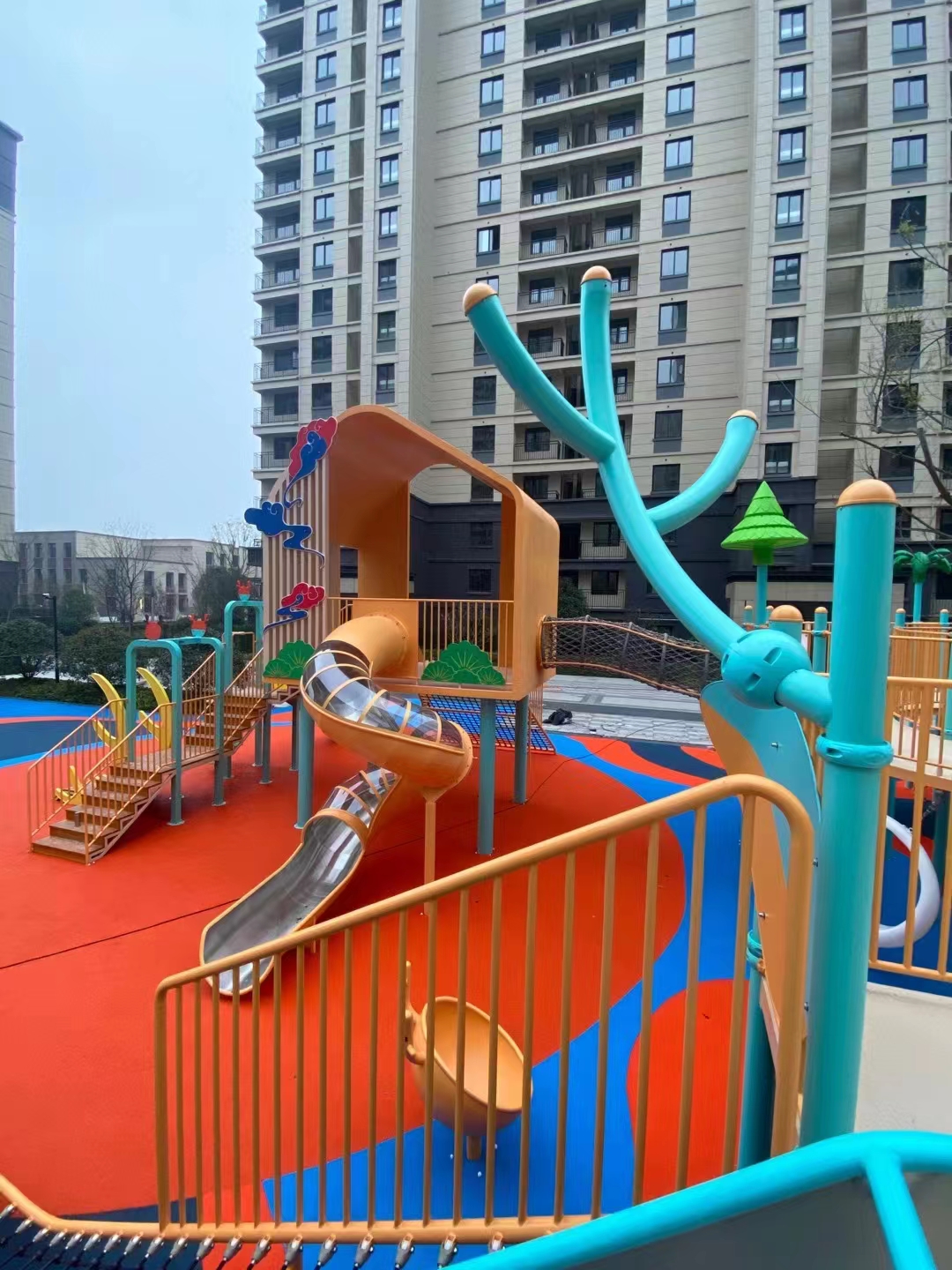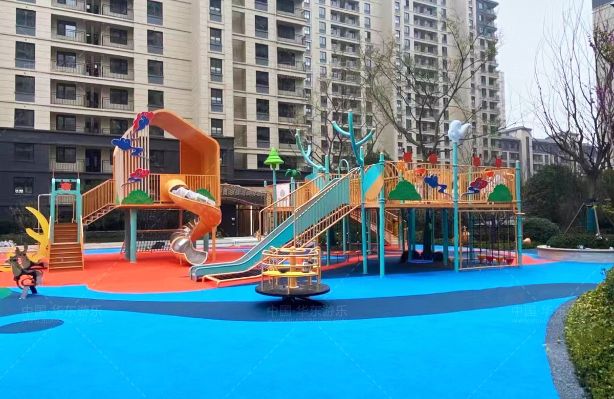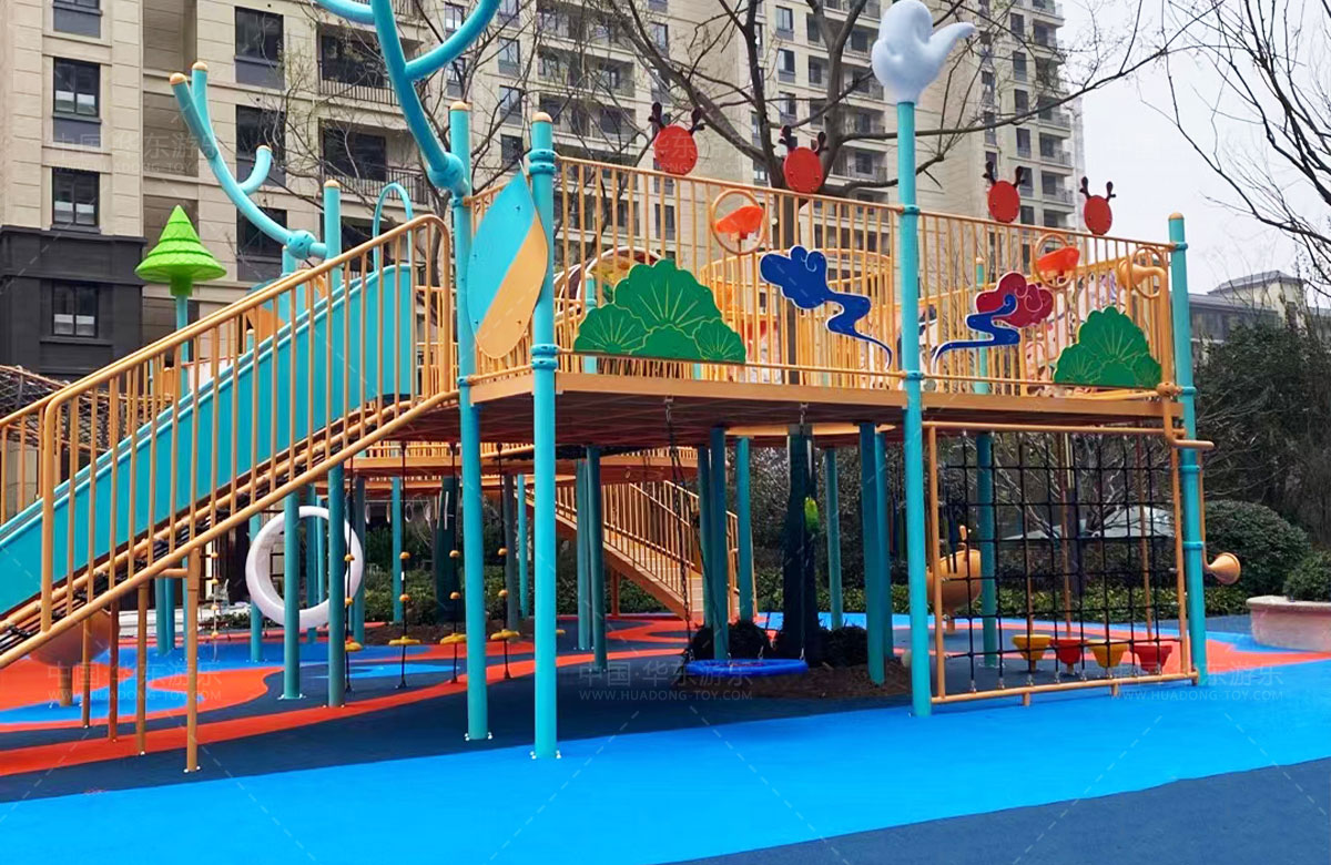 建投东方名府源著儿童游乐项目是银河游乐生产的非标定制的主题性游乐设备,整个项目采用以森林麋鹿为设计主题,分别设计了攀爬网、钻洞、不锈钢滑梯、旋转椅、传声筒、秋千、脚踏平衡杆、攀爬梯等功能,为小朋友的健康成长提供了一个很好的游玩场所。