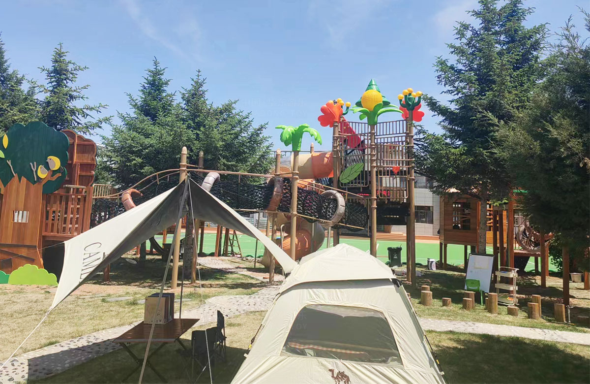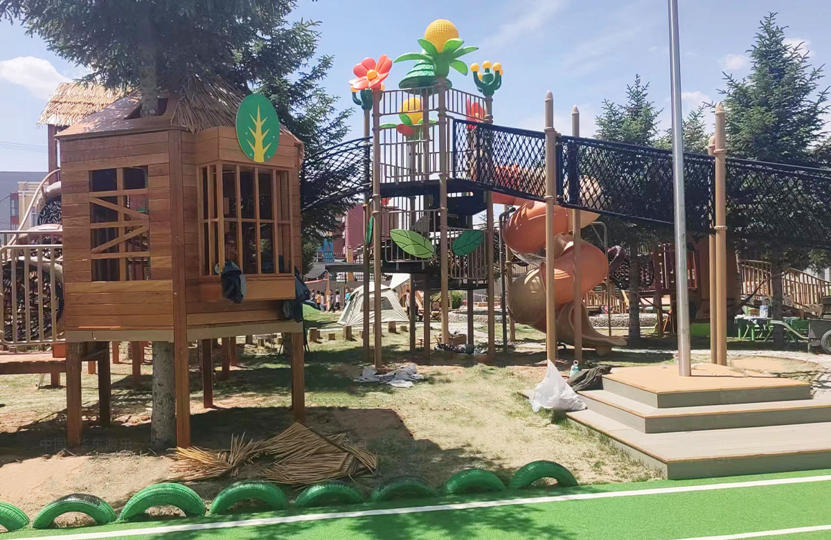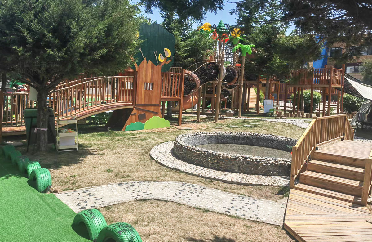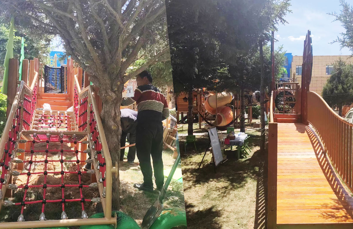 该幼儿园是一个专业性的学前教育培训机构,选用的是银河游乐自主研发和设计的具有空中攀爬网、钻洞、空中栈道、游戏小屋、直行滑梯为一体的综合性 游乐设备,这些设备的选择不仅仅丰富了孩子们校园的生活,还很好的锻炼了小朋友的攀爬能力、四肢的协调能力、攀爬过程中的平衡能力,同时也促进了孩子们大小脑的发育。