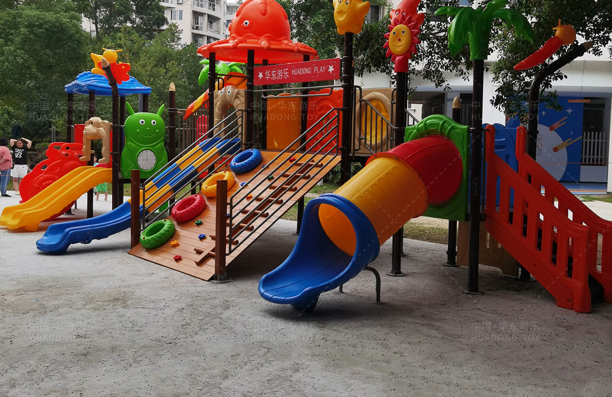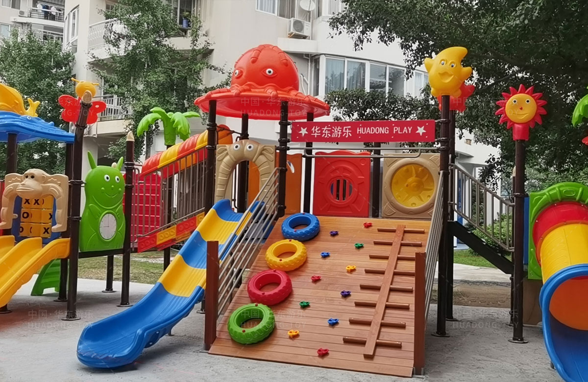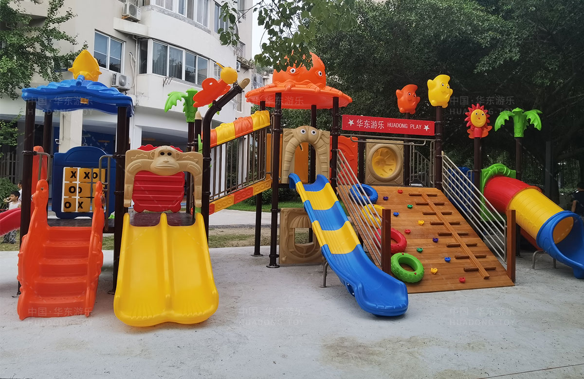 该小区选用的是银河游乐自主研发和设计的大自然系列组合滑梯,是一款具备了攀爬网、攀爬梯、直行滑梯、滑筒等功能为一体的综合性游乐设备,能够很好的为小朋友提供休闲娱乐的场所。