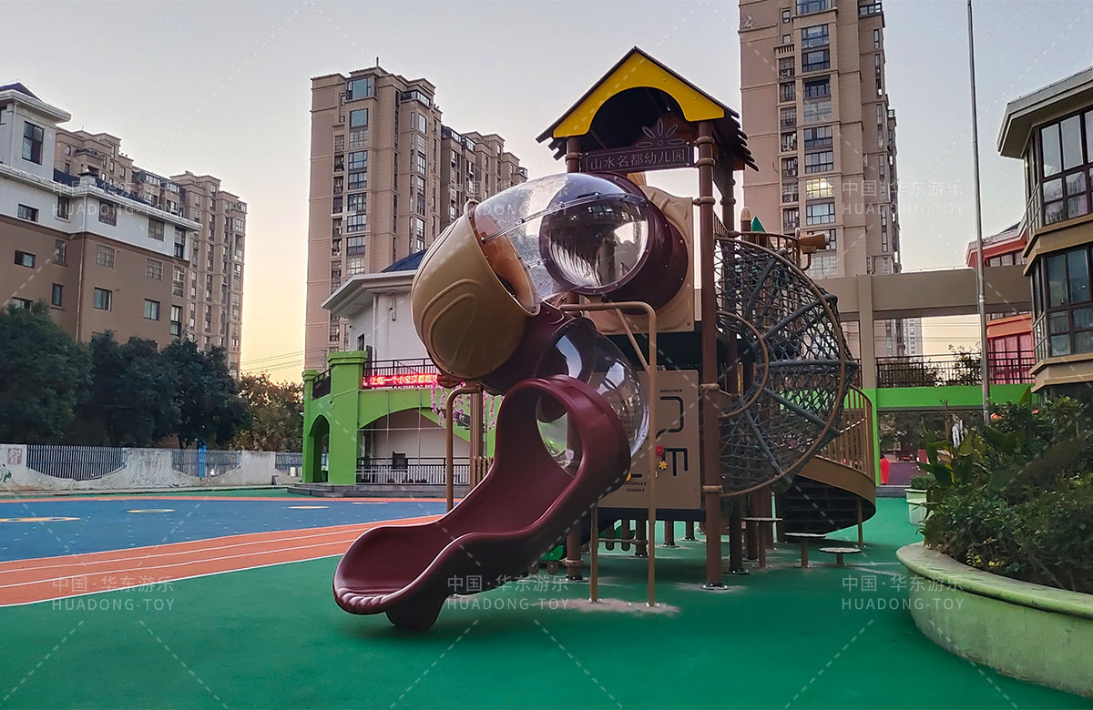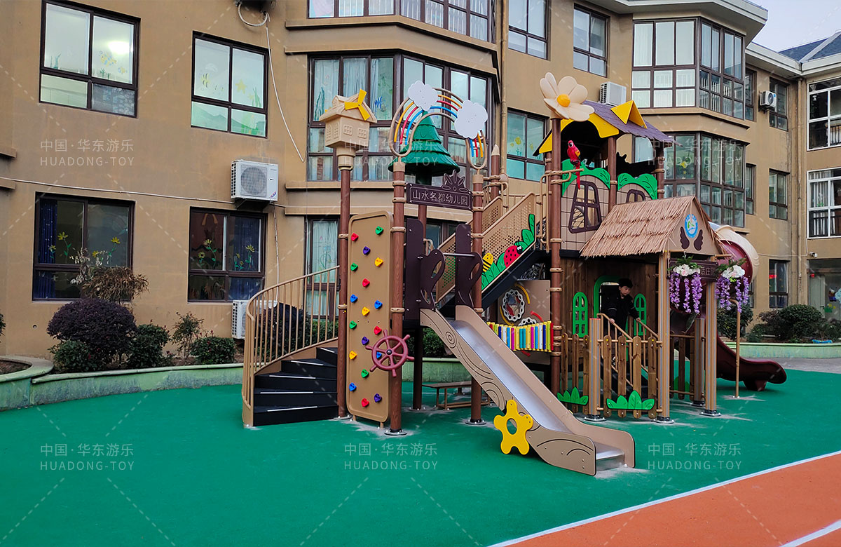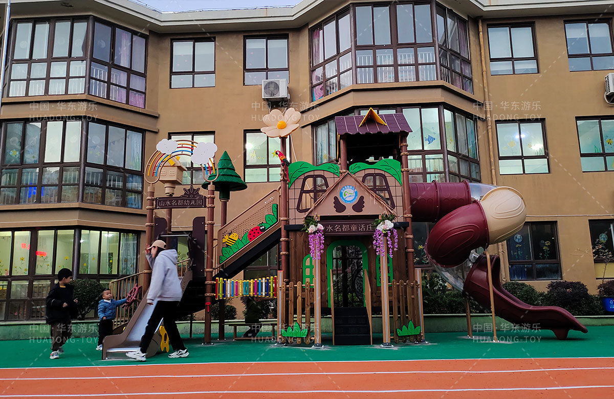 江苏省淮安市山水名都幼儿园是一家专业的学期教育培训机构,此次选用的是银河游乐自主研发和设计的通话庄园系列组合滑梯,该设备具备了攀爬网、攀爬墙、打击乐器、旋转滑梯等功能,是一款功能齐全、主题鲜明、颜色艳丽、品质优越的综合性游乐设备,非常适合幼儿园。