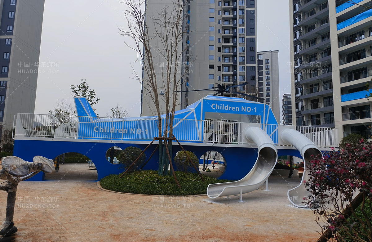 江西省上饶市碧桂园是一家高端的生活服务小区,此次选用的是银河游乐自主研发和设计的直飞机主题的非标定制游乐设备,分别设置了大型滑筒、攀爬网、攀爬梯、钻洞、攀爬墙、大型观光廊架等功能,卡通的造型、齐全的功能、深受孩子们的喜爱,除此之外还添置了各种类型的健身器、儿童秋千、儿童摇摇乐、旋转椅等游乐设备,不仅丰富了小区的生活,也为老人提供了一个很好的健身场所。