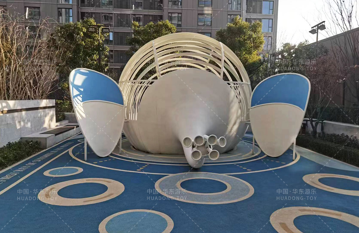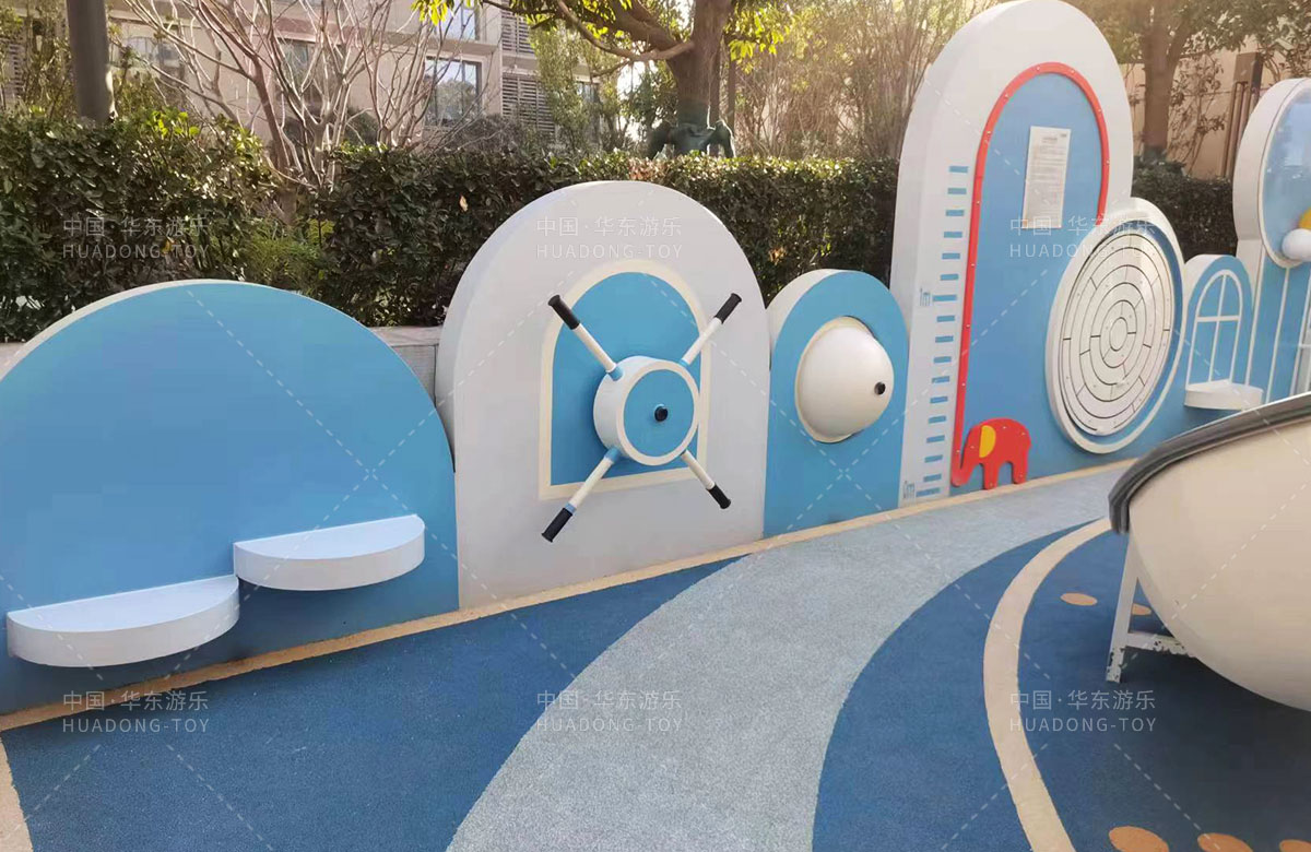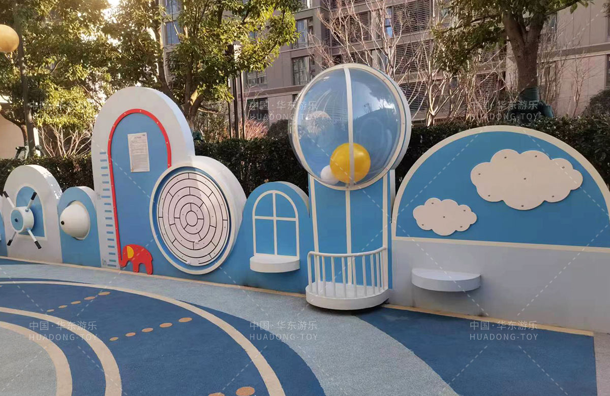 华润置地九悦选用的是银河游乐自主研发和设计的以大象为主题的非标定制系列产品,为了更好的迎合小朋友买的健康发展,该项目分别设置了钻洞、不锈钢滑梯、攀爬岩、攀爬绳,以及集合了功能齐全的趣味墙。