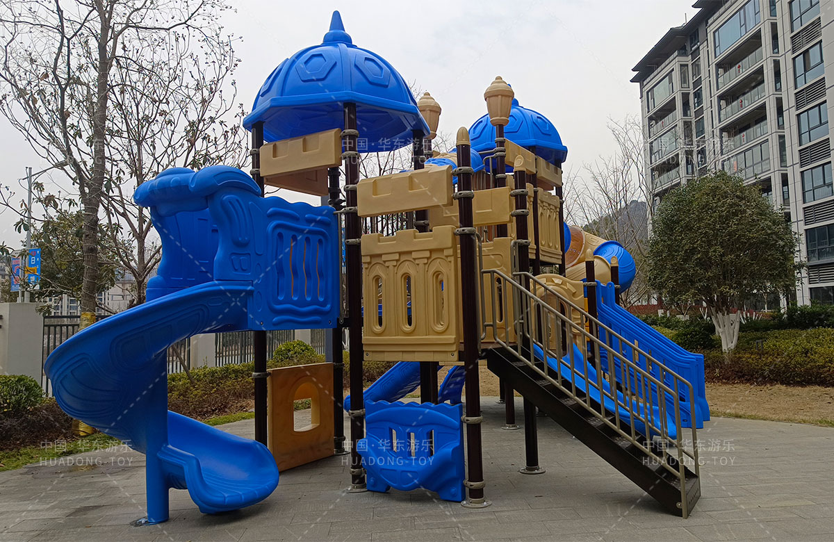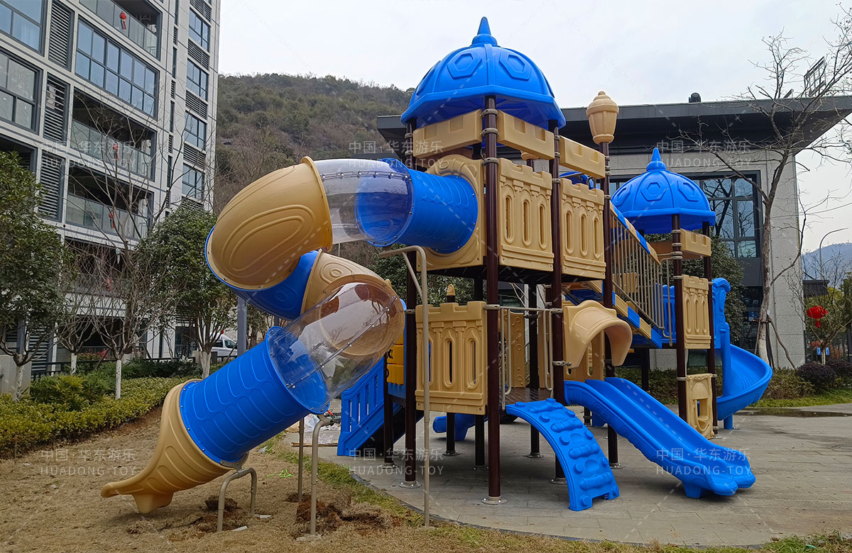 该小区选用的是银河游乐自主研发和设计的别墅屋系列组合滑梯,该滑梯具有颜色艳丽、使用寿命长、功能齐全等特点,深受孩子们和客户的喜爱。