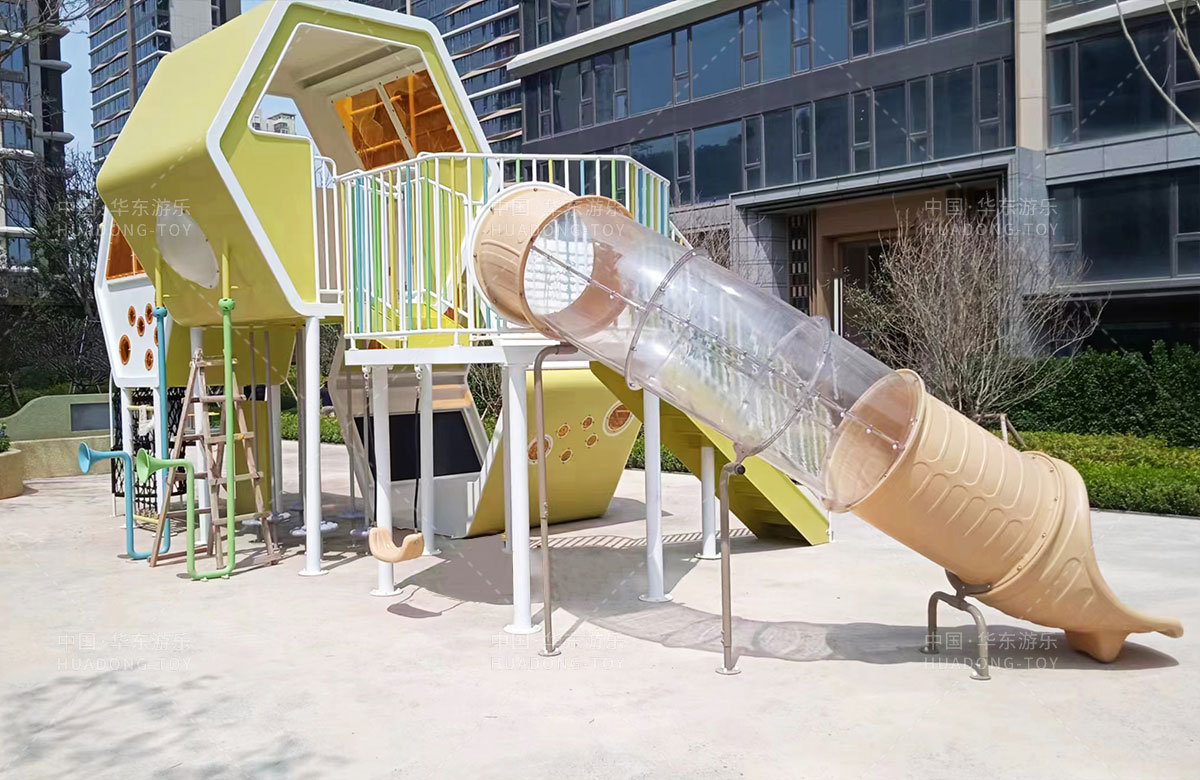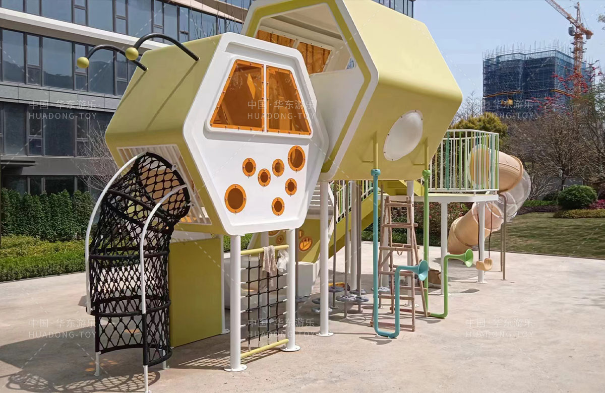 该项目选用的是银河游乐自主研发和设计的以蜜蜂巢穴为主题的游乐园,具备了大型滑梯、攀爬网、传声筒、儿童秋千、平衡杆等功能,同时为了更好的关注老年人的晚年健康,该项目还设计了不同功能的成人健身器,让更多的人群有一个休闲、娱乐、健身的场所。