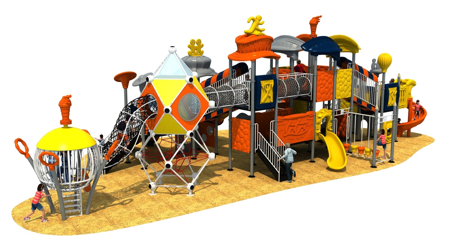 赛事系列游乐设备是银河游乐根据常见的足球、垒篮球体育等赛事而自主研发和设计的组合滑梯,它是一款能够引导孩子们在玩耍时小朋友之间应该互相帮助、相互鼓励的无动力游乐器械,也是一个具备教导孩子们学会通过自己的努力取得最终胜利而敢于拼搏和挑战的游乐设备,卡通的造型、生动的形象让小朋友在玩耍的过程中有一个愉快的童年。