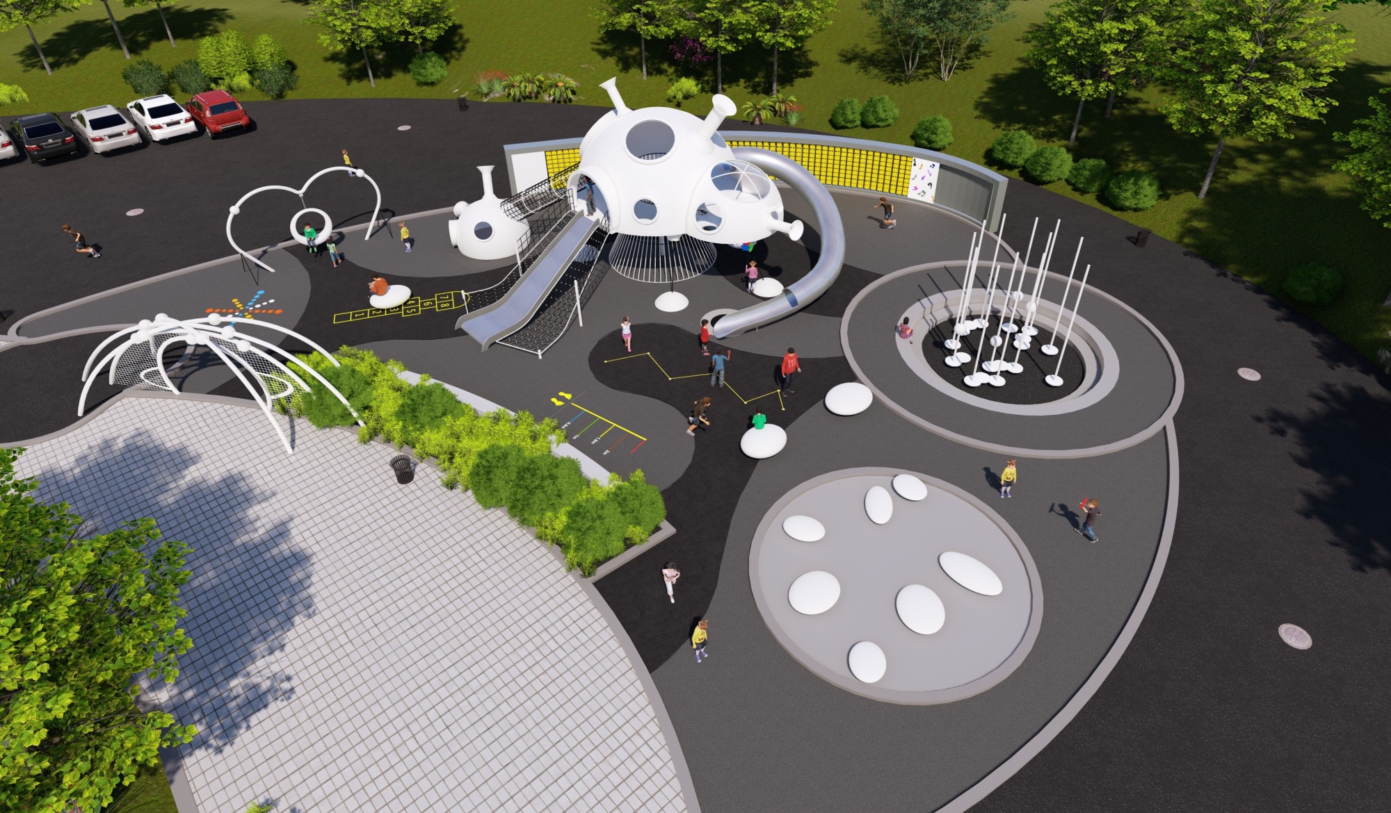 主题公园、学校、房地产小区、市政广场、超市、酒店等