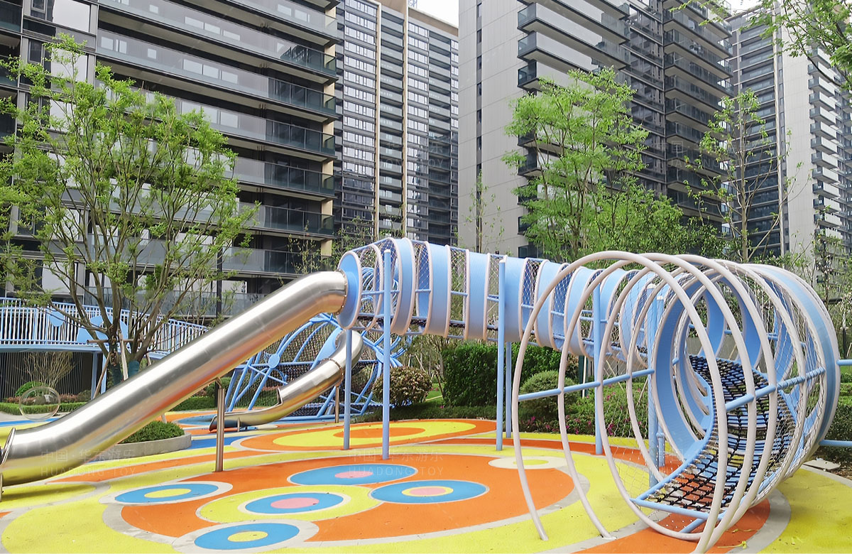 温州德信是一家高端居民小区,为了更好的提供高端的服务,该小区选用的是银河游乐自主研发和生产的以“田螺公主”为主题的综合性游乐园,设置了孩子们喜欢的钻洞、攀爬、秋千、摇摇乐、翻翻乐、不锈钢滑梯、攀爬网等功能的游乐设备,不仅丰富了小区的生活,也为孩子们的玩耍提供了一个很好的游乐场所。