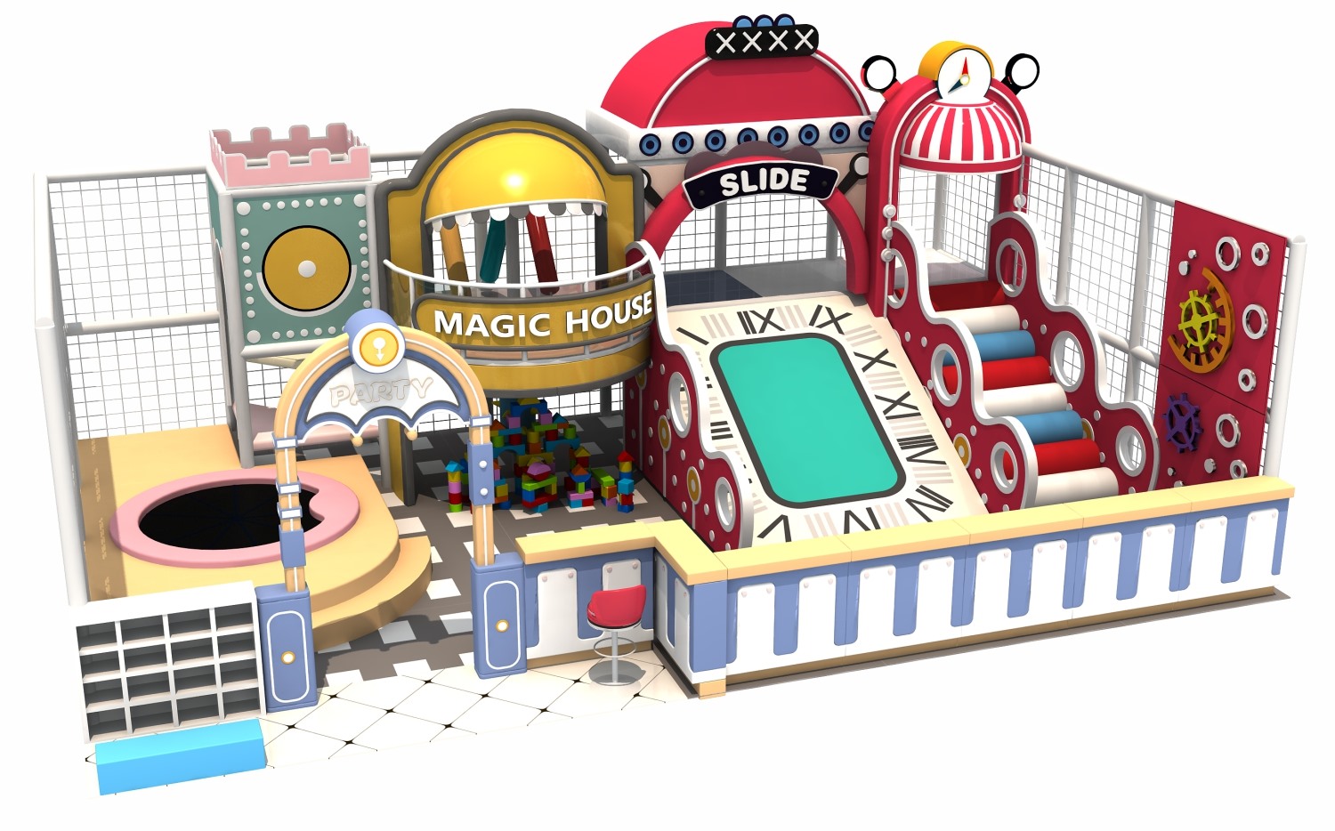• 室内淘气堡又称室内儿童乐园,是针对儿童生理能力与心理特点喜欢钻、爬、滑、滚、晃、荡、跳、摇等玩耍动作而设计的综合性室内休闲娱乐场所。银河游乐淘气堡项目具有多样性、互动性和安全性的特点,儿童在玩乐的同时能培养独立的个性,团队协作能力,沟通能力、克服困难、积极进取的精神,锻炼身体、健脑益智。