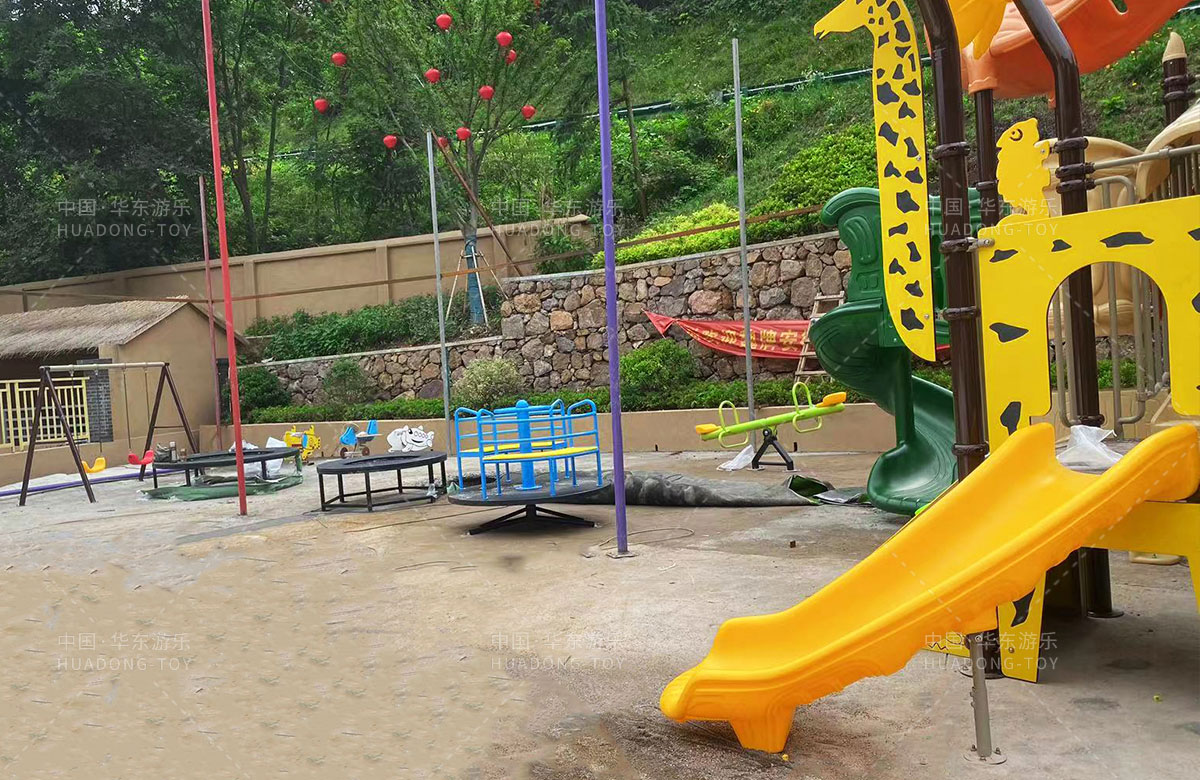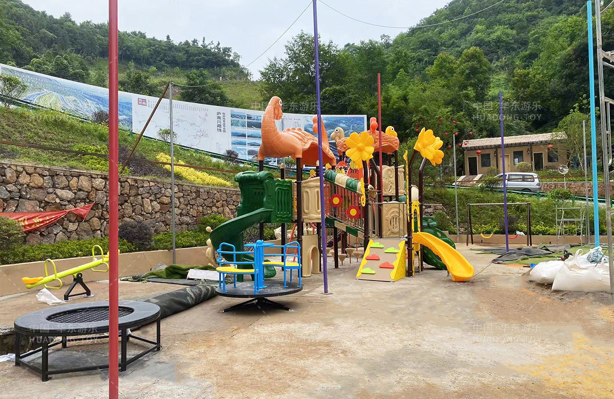 庐南地区作为庐江县全域旅游发展的重要部分,人文荟萃、风景优美、物产丰富。蜿蜒在群山之间的庐南川藏线,既是一条串联起4镇14村的百公里风景道,更是一道庐南致富路。为了更好的发展乡村旅游,完善当地的基础设施,吸引更多的人群来旅游,整个线路新增了儿童游乐园项目,该项目除了有以动物系列为主的组合滑梯,还设置了小朋友喜欢的地蹦床、组合秋千、旋转座椅、儿童摇摇乐、跷跷板等游乐设备。