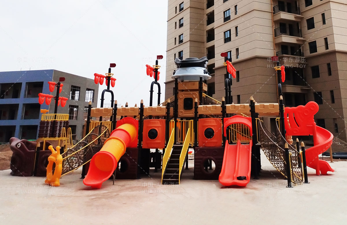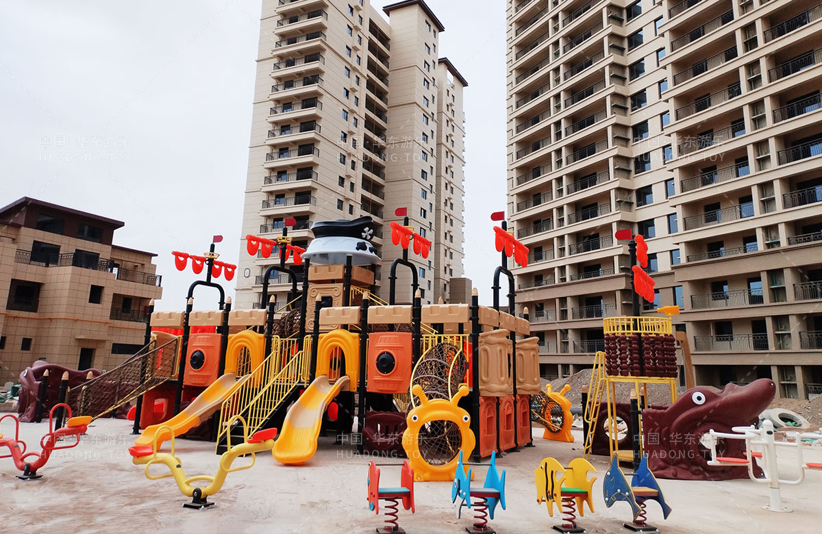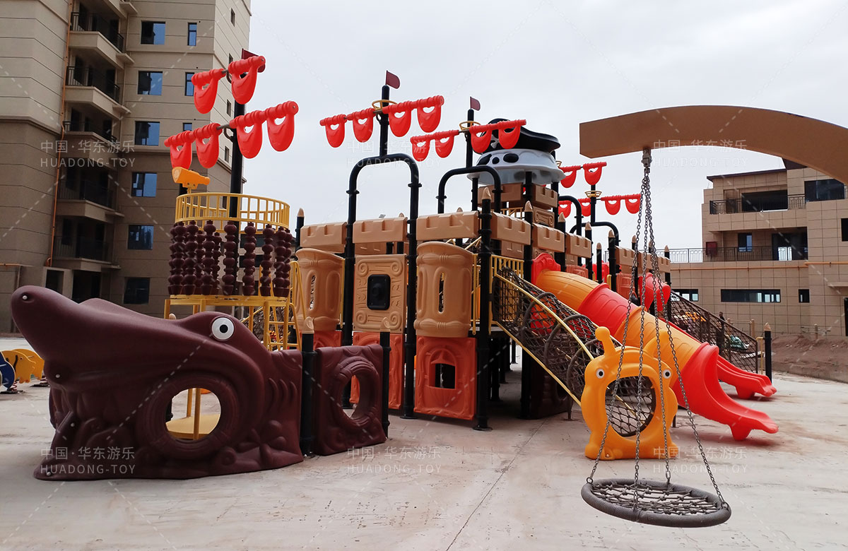 该项目选用的是银河游乐自主研发和设计的以海盗系列为主题设计的海盗船系列组合滑梯,该滑梯具备功能齐全、颜色艳丽、使用寿命长、安全环保等特点,是一款非常受小朋友欢迎的组合滑梯,除此之外还设置了小朋友喜欢的儿童摇摇乐、秋千等游乐设备,同时还专门设计了健身区,为生活在当地的人群提供了一个休息、娱乐、遛娃的场所。