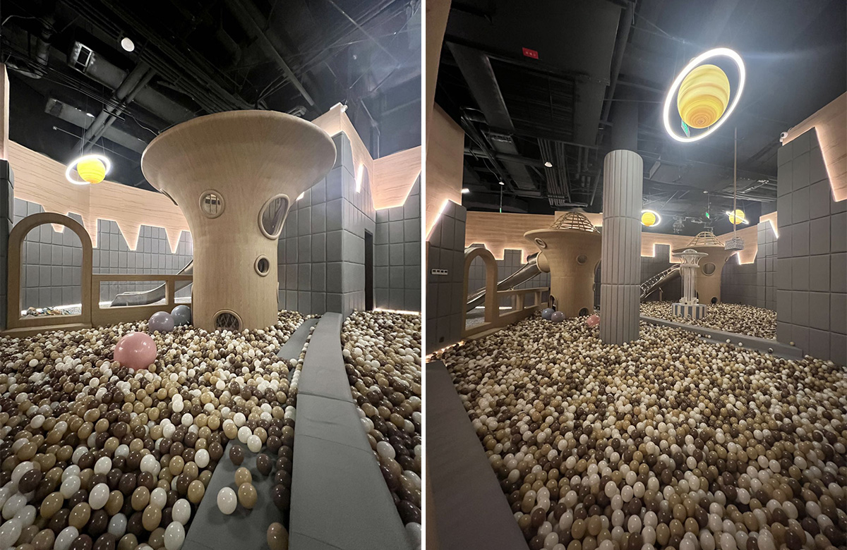 新疆草原大酒店儿童游乐园是一个主题性的旅游酒店,此次选用的是银河游乐自主研发和设计的以星空探险为主题的室内淘气堡儿童游乐园,整个游乐园分别设计了海洋球、互动媒体、旋转星球、宇宙飞碟、太空球等功能,整个游乐园灯光与设备交相辉映,孩子们仿佛置身于浩渺的星空世界。