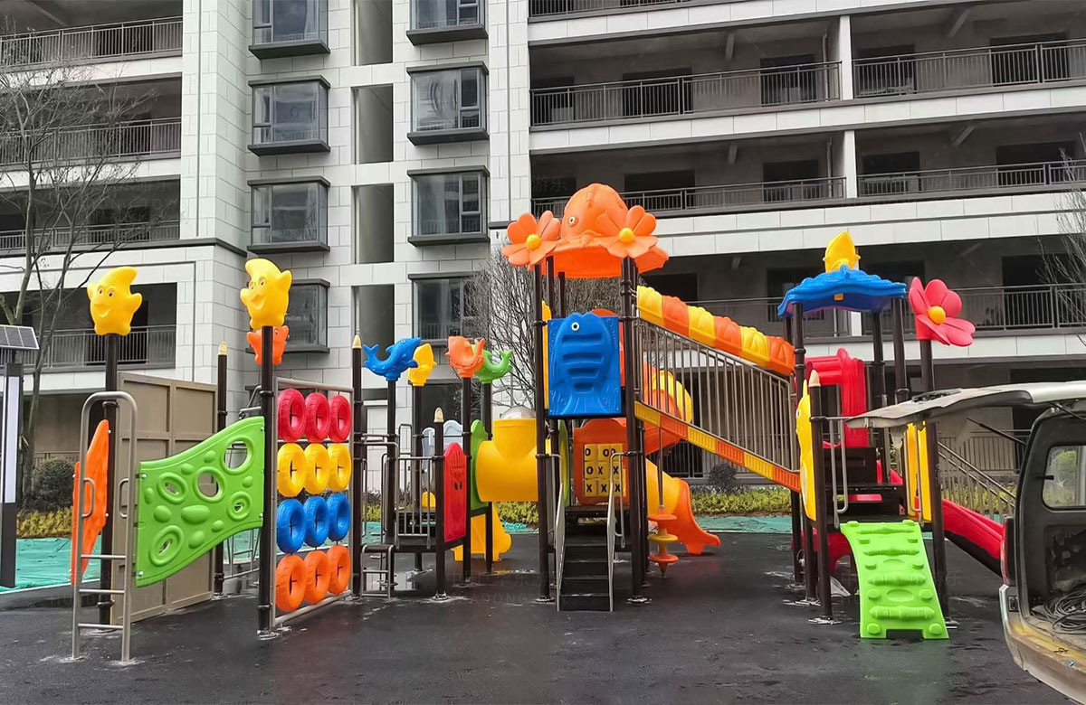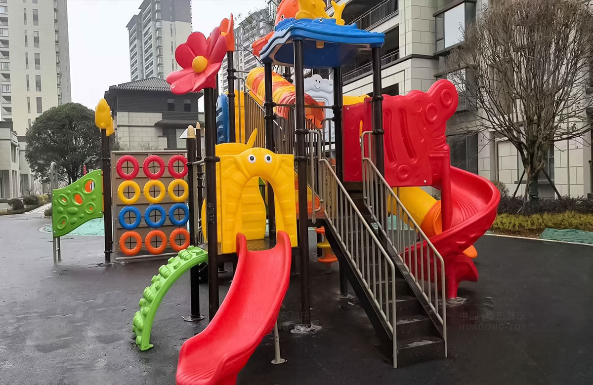 云南曲靖罗平县花海国际小区选用的是银河游乐自主研发和设计的动物系列组合滑梯,该滑梯具有功能齐全、玩法多样,深受孩子们的喜爱,除此之外还是一款颜色艳丽、使用寿命长等特点。