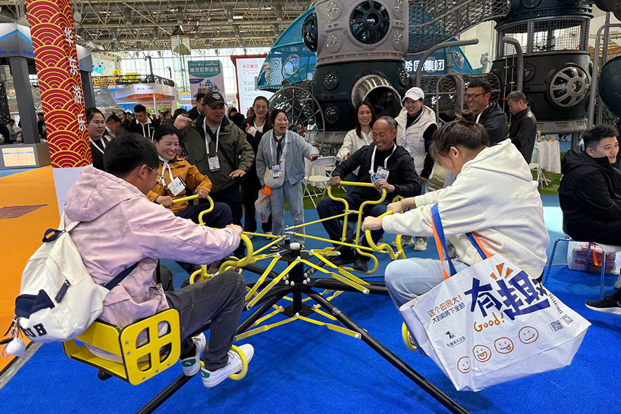 展会期间,银河游乐的展位成为了整个博览会的焦点之一。公司带来的西游神话组合设备、旋转座椅、塑料攀爬设施以及迷你高尔夫球场等展品,以其独特的设计理念、卓越的性能表现和寓教于乐的功能,吸引了大量参观者的驻足观看和亲身体验。特别是西游神话组合设备,以其丰富的文化内涵和高科技互动体验,更是成为了展会的明星展品,吸引了众多游客排队等候体验,展位前人头攒动,人气爆棚。