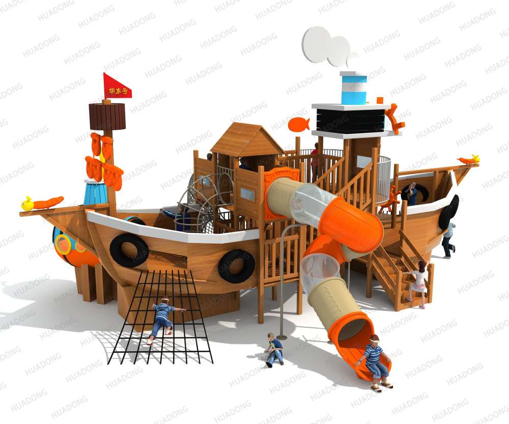 木制海盗船 HD-MHD010-儿童滑梯、滑梯组合